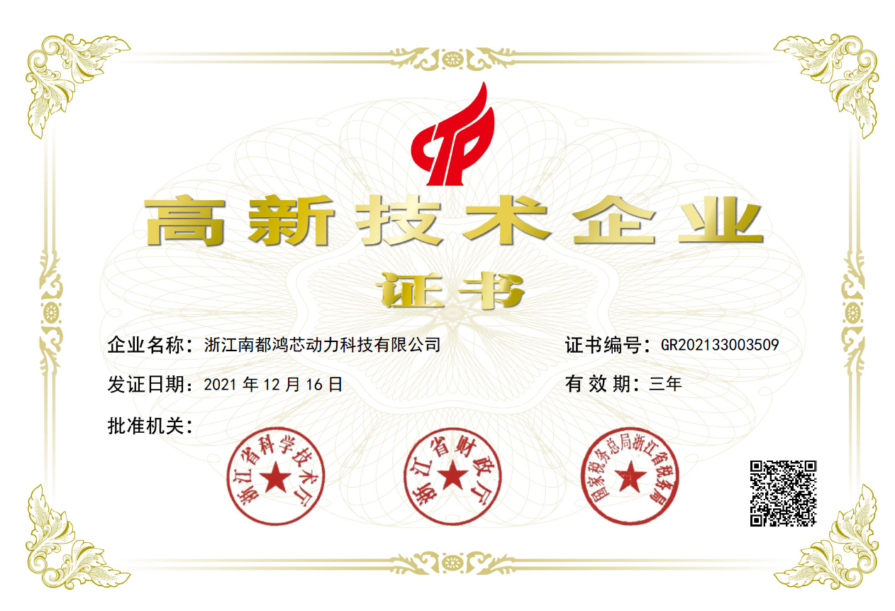 近日,欧美性爱 全资子公司——浙江南都鸿芯动力科技有限公司获得国家高新技术企业认定。根据相关规定,南都鸿芯自通过高新技术企业认定起连续三年,可享受国家关于高新技术企业的税收优惠政策。
