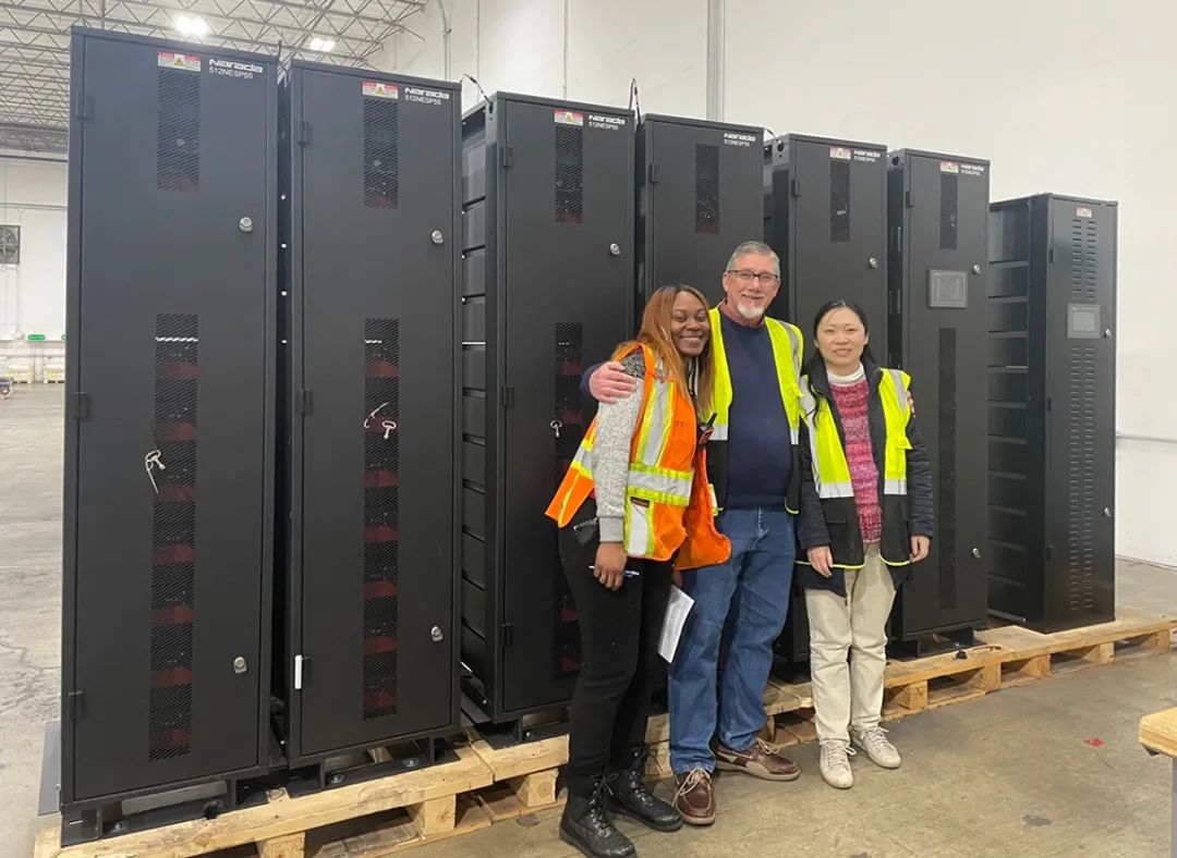 第一批高压锂电系统运到项目地后,客户对产品进行了背靠背的并联排布,在调试过程中,发现各系统间的智能控制信号传输有干扰。项目技术团队立即通过远程视频与客户一项项排查原因,倒着时差过上了美国时间。