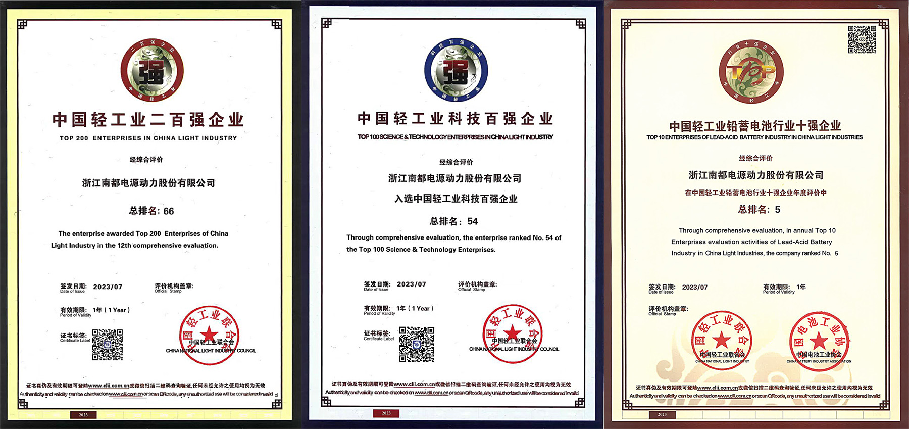 日前,中国轻工业联合会发布了 2022年度中国轻工业二百强企业榜单,欧美性爱 再次入选,位列第66位,同时公司还荣获了中国轻工业科技百强榜第54位和中国轻工业新能源电池行业十强榜第5位。