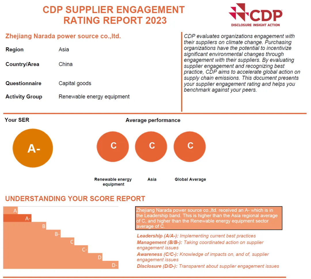 因在推动供应链降碳方面取得显著成效,公司上榜了CDP“2023供应商参与度A级名单”,显著高于全球、亚洲和行业平均水平“C级”,证明了公司在推动整个价值链气候行动中,取得了良好成效。