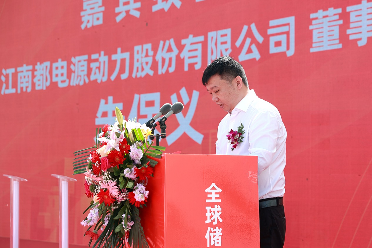 投产仪式上,酒泉南都总经理李景康上台作项目介绍。他首先感谢各级各部门对项目给予的大力支持和帮助,感谢项目团队的全力付出。他介绍,酒泉南都自2023年9月开工建设,是甘肃省内引进的首家磷酸铁锂储能电池及系统集成制造项目。