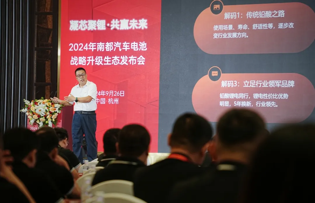 9月26日,“凝芯聚锂 共赢未来”2024南都汽车电池战略升级生态发布会在杭州举行。在200余位领导来宾的共同见证下,公司正式发布南都驻车智能锂电,向着“5180”的营销战略目标前进。