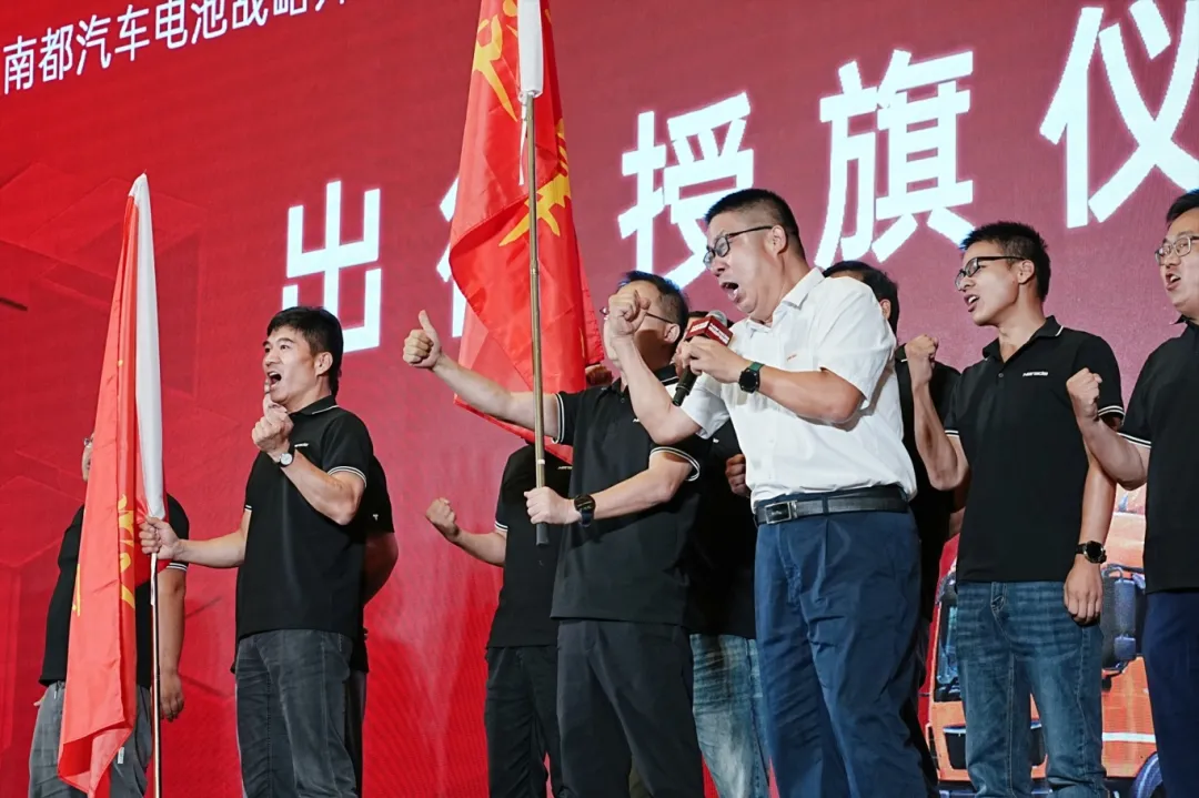 授旗仪式上,在现场来宾的见证下,高新强为5名南都销售大区负责人授旗,他们将带着目标与责任,分赴华北、华南、东南、华东、西南、西北等地开展销服工作。