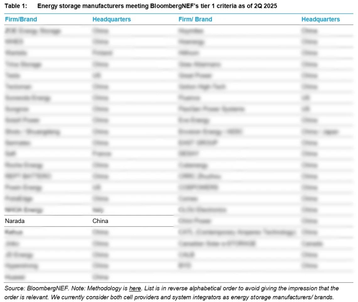 日前,彭博新能源财经(BNEF)公布2025年第二季度全球Tier1一级储能厂商榜单(BNEF Energy Storage Tier 1 List 2Q 2025),欧美性爱 再次荣登榜单。