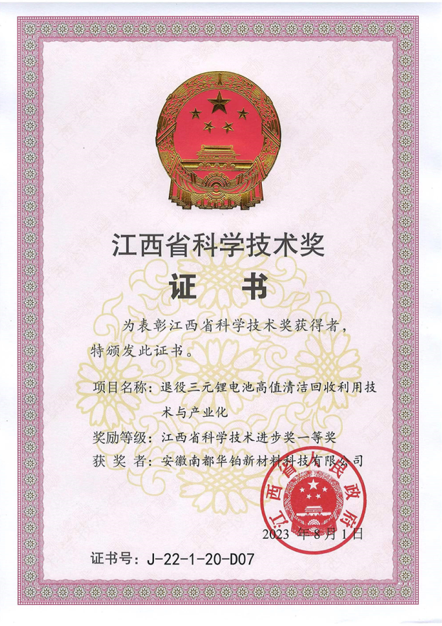华铂新材料秉承“生态优先、绿色发展”理念,推动产业升级,先后获得“国家级绿色工厂”“江西省科学技术奖一等奖”“国家科技型中小企业”“技术创新贡献企业”等荣誉称号。