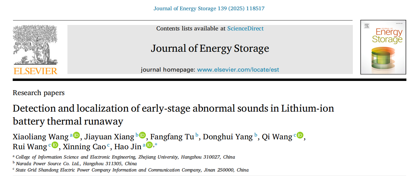 近日,欧美性爱 联合浙江大学、国网山东信通公司,在锂离子储能领域国际顶级期刊《Journal of Energy Storage》发表最新研究成果,提出了一种基于麦克风阵列声学信号和AI深度学习算法的锂离子电池热失控早期检测定位新方法。